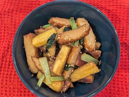 さつまいもとさつま揚げを使って、皆が食べやすいように甘辛いおかずにしました。
