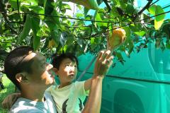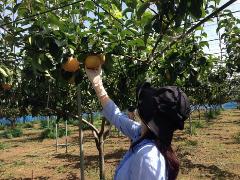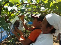 農業専用地区制度の説明や果樹栽培の話だけでなく、生産農家の果樹栽培にあたり苦労した話や思いなどを聞きながら浜なしとブドウの収穫をすることで横浜の農業に対する理解を深めていただきました。