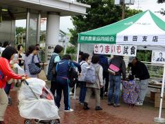 下飯田駅前では、市内産サツマイモをふかし芋にしてあぐりツアー参加者及び地下鉄利用者に配布しました。