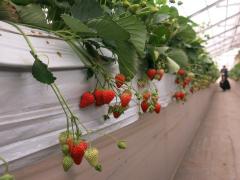 最後に高設で栽培されたイチゴ栽培施設を見学し、完熟した市内産のイチゴを味わっていただきました。