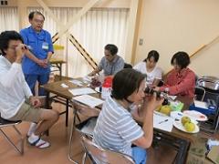 干し柿づくり講座では作り方の見学や、甘柿と渋柿の食べ比べを行いました。参加者は普段、食べる機会のない渋柿の味に驚きながらも味の違いを楽しんでいました。