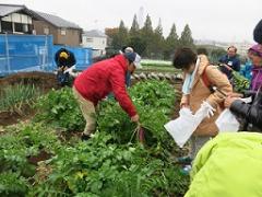 長津田台農業専用地区でサツマイモ掘り、田奈恵みの里の紹介、四季菜館(直売所)見学を実施しました。
