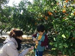 次に、柴農業専用地区へ移動し、恵みの里直売所の見学を行いました。見学を終えた後、海を一望できる広場で、JA横浜柴農園管理事務所の職員から柴地区について説明を聞きました。生産者から当地区で盛んに行われているみかん栽培の話を聞いた後、みかん狩りを行いました。参加者は、太陽をいっぱい浴びて大きく実ったみかんを、楽しみながら自分で収穫し、その場で味わっていました。