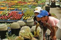 次に訪れたのは、サボテンや多肉植物の栽培温室兼直売所であるカクタス広瀬。カラフルなサボテンや珍しい多肉植物の生産方法や家庭での管理の仕方などを聞きながら、温室見学を楽しみました。