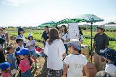 フェリス女学院大学のエコキャンパス研究会が中心となって企画した内容は、サツマイモ収穫体験と牧場見学。エコキャンパス研究会の学生による進行では、農家の紹介や大学と農家の方との活動内容の説明のほか、収穫体験の前にサツマイモクイズをする等、参加者との会話も弾みました。