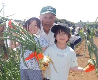 野菜生産農家の指導の下、玉ねぎの収穫を体験します。
