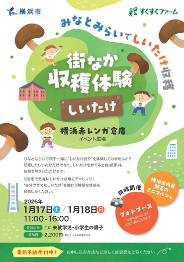 横浜赤レンガ倉庫イベント広場において横浜市内産の菌床しいたけを使った、収穫体験イベントを開催します。
