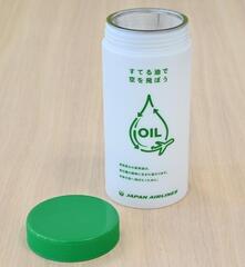 ※「すてる油で空を飛ぼう」 プロジェクトにご参加(参加費200円税抜き)いただくと、JALオリジナルUCOボトルが進呈されます。ペットボトル等でもご持参いただく事は出来ますが、油を入れたあとのペットボトルはリサイクルができないため、店頭での容器回収は行いません。便利な専用の回収ボトルをご利用ください。