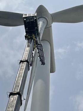 6月28日から7月19日までベスタス・ジャパン株式会社が、新型高所作業床(大京建機株式会社が設計・開発した)を用いて日本初の工法で補修作業を実施しました。