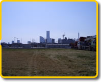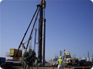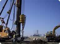 現場での基礎工事がはじまりました。写真は、杭打ちの様子です。