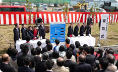 竣工式が行われ、幸ケ谷小学校の子供たちの掛け声で風力発電の運転スイッチが押されるとともに、ゆっくりと風車が回り始め、正式に運転を開始しました。