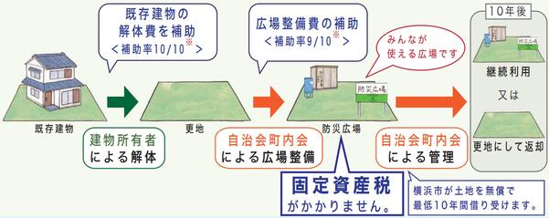 防災広場整備に伴う老朽建築物などの解体費用は別途補助します。