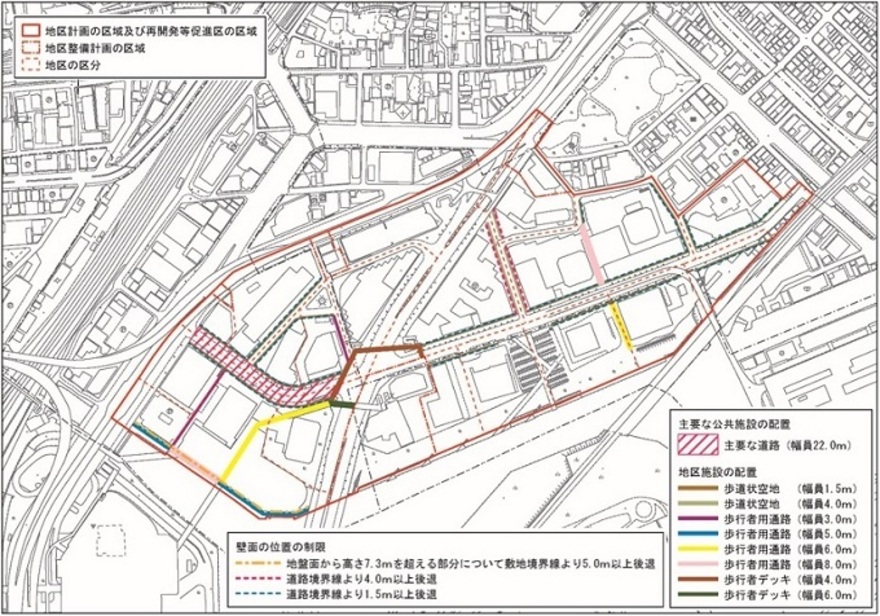 計画図(主要な公共施設、地区施設、壁面位置の制限)