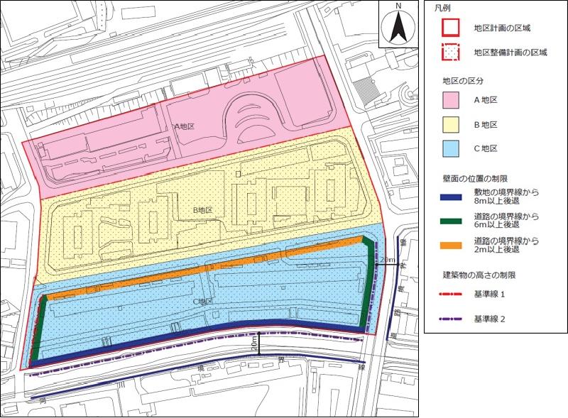 計画図(地区の区分・壁面の位置の制限・建築物の高さの制限)