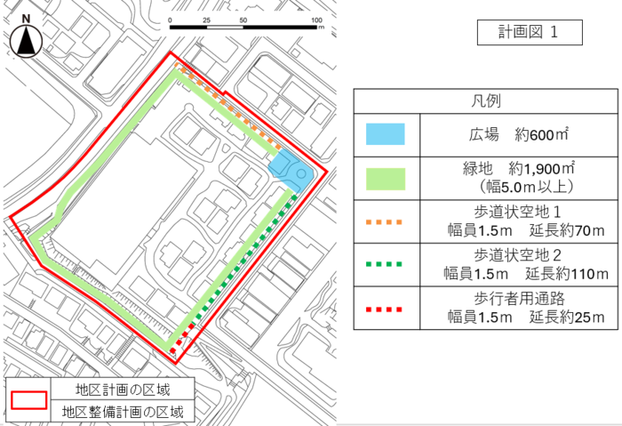 | 地区施設の配置及び規模 | 広場 | 約600㎡ | ||||