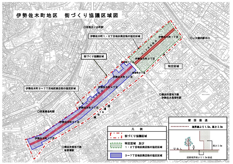※伊勢佐木町1~7丁目の商店街「街づくり協定」地区内においては、商店街「街づくり委員会」に対して、建築計画の協議を行ってください。