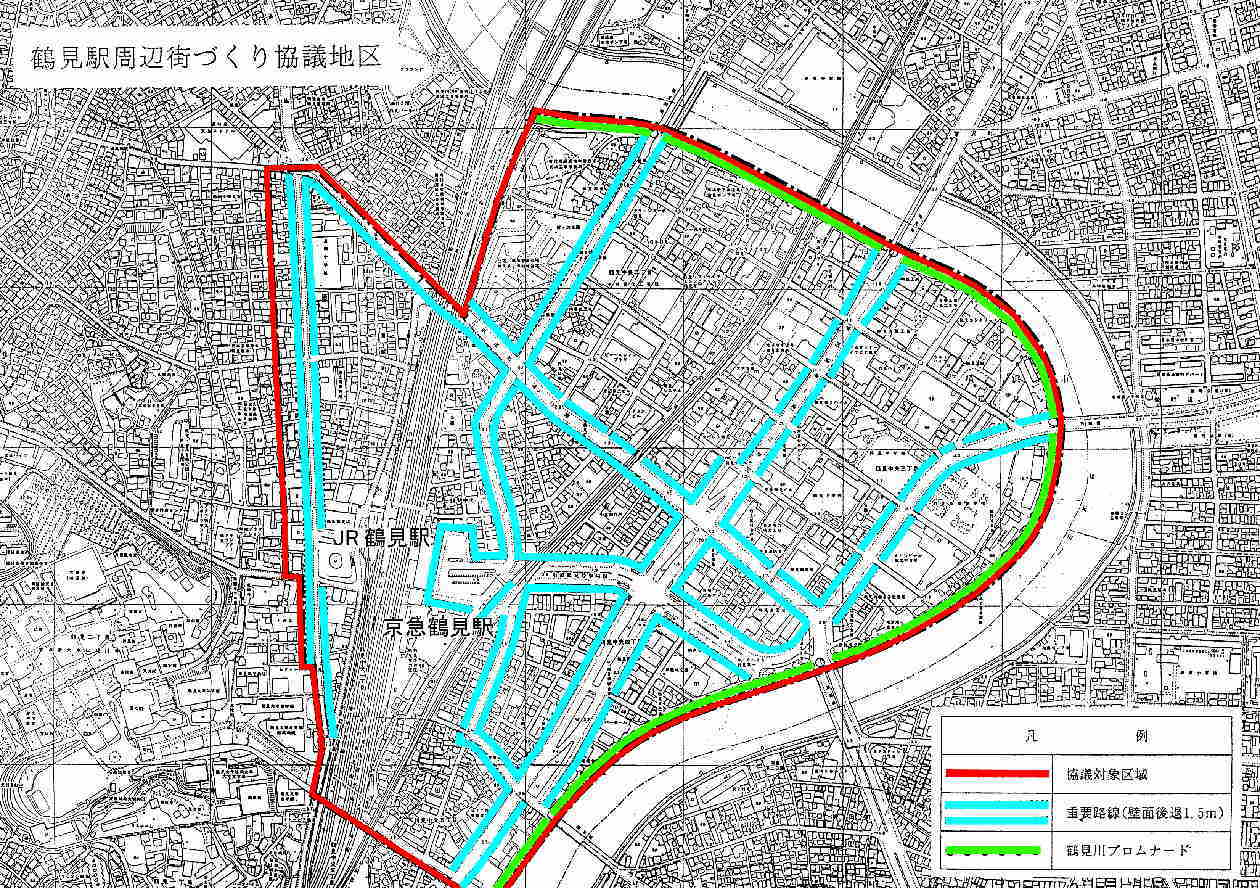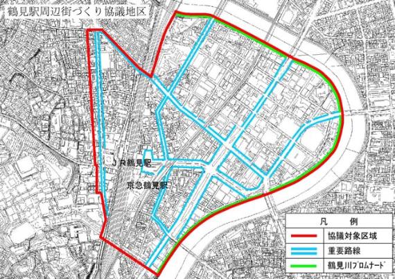 鶴見駅周辺地区は、拠点駅周辺地区として、買い物や文化的な活動などの生活活動における利便性を高めるとともに、身近なところに働く場を求める市民に多様な就業機会を提供するため、日常生活の総合的な機能集積を促進しています。具体的には、商業施設等多様な生活関連施設の集積及び核となる業務施設の整備の促進、歩行者空間・駐車場の計画的整備を誘導します。