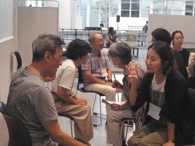 続いて行われた「トークフォークダンス」では、参加者が外側と内側に二つの円を作り、相手を変えながら語り合うスタイルで意見交換を行いました。