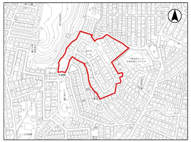 横浜市旭区今宿町2649番地、2658番地及びその周辺の区域で、藤和フレッシュタウン希望ヶ丘1街区管理組合に加入している区域(約2.3ha)