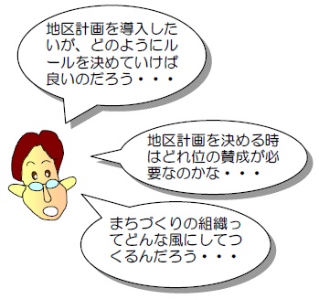 第1部では、身近なまちづくり全般を対象に、第2部では、身近なまちづくりの中でも地区計画を策定する場合を対象に、合意形成の進め方等について解説しています。