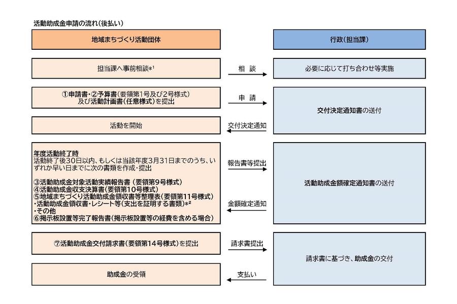 支払いは、後払いが原則です。例外として、活動の原資がない場合、先払いとすることができます。