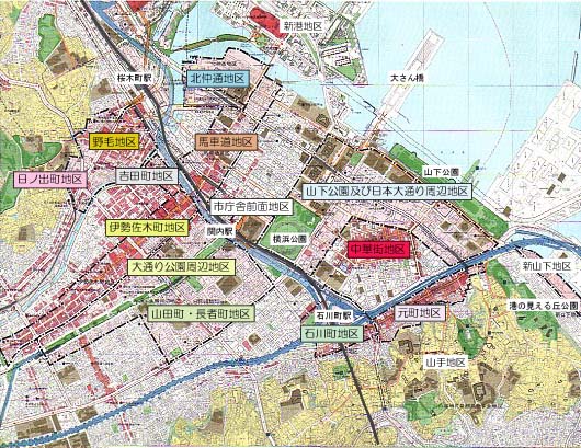 関内・関外地区は、開港以来の歴史と文化や個性豊かな商店街など、独自の魅力を有している地区であり、地区ごとの特徴を伸ばしていくために、「地区計画」や「街づくり協議地区」、「地域まちづくりルール」が運用されています。