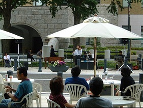 街づくり協議地区に指定し、敷地の共同化、歩行者空間の確保、建物用途、都市景観の調和、緑化の推進などについて、建築計画時に事前協議を行っています。(→大通り公園周辺地区街づくり協議指針)