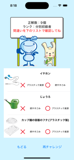 これまで表示していた「プラスチック製容器包装」に関する表示をなくし、「プラスチック資源」の分別でゲームを楽しめるようになりました。