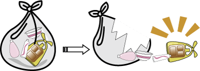・小型家電製品(電気・電池で動くもの)→小型家電回収ボックスへ、または「燃やすごみ」の日に別袋でお出しください。