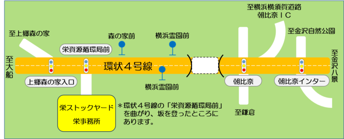 所在地 栄区上郷町1570-1 *環状4号線の「栄資源循環局前」を曲がり、坂を登ったところにあります。