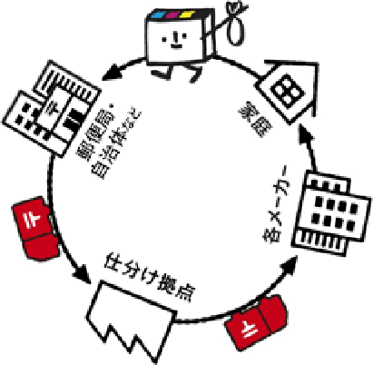 横浜市では、3Rの推進やCO2排出量の削減に向けた取組の一環として、プリンターメーカー4社(ブラザー株式会社、キヤノン株式会社、セイコーエプソン株式会社、日本ヒューレット・パッカード株式会社)が進めている、使用済みインクカートリッジの回収から再資源化までのリサイクル活動「インクカートリッジ里帰りプロジェクト(外部サイト)」に参加しています。