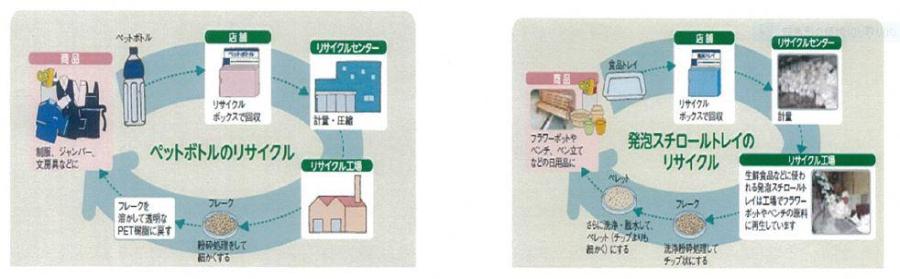 家庭ごみの削減と再資源化を図るために、プラスチック製使用済み容器包装を全店で店頭回収しています。回収した容器包装は、全て再資源として国内循環ルートでリサイクルしています。