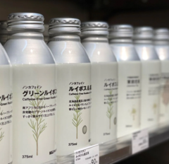 株式会社良品計画の展開する無印良品では、販売していたペットボトル飲料を循環型原料であるアルミ缶へ切り替えて販売しています。アルミ缶は、日本国内のリサイクル率が約98%、さらに缶から缶への水平リサイクル率も約70%と高く、繰り返しリサイクルできる素材です。また、アルミ缶のボトルは遮光ができ、透過を抑えられるため賞味期間が長くなり、フードロスの削減につながることも期待し変更しました。