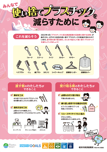 本市では、「よこはまプラスチック資源循環アクションプログラム」を策定し、プラスチック対策の取組を進めています。