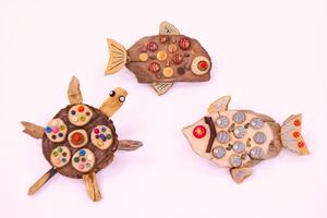 自然の材料を組み合わせたり、模様を描いたりして楽しさ満載の海の生き物たちができあがります。