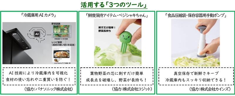 下記3つの食品ロス削減ツールをご提供いただきます。