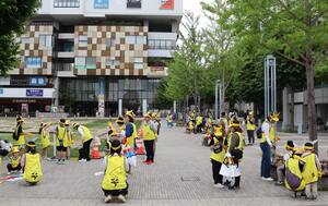 参加者の皆様にピカチュウになりきってもらい、「センター地区をピカピカに!」という元気な掛け声と共にごみ拾いスタート。