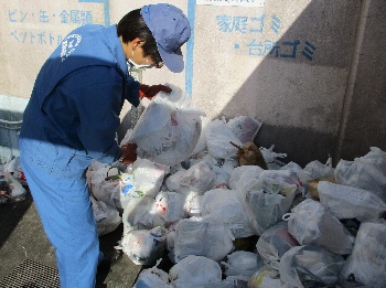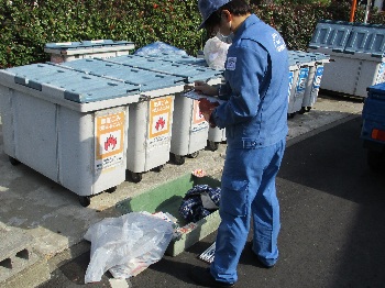 循環型社会の形成に必要な分別ルールを守っていただくため、本市職員が分別排出指導を行っております。