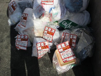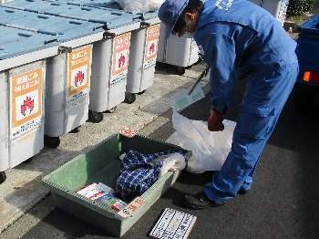 後日改めて集積所から回収、調査を行い、未分別のごみを出した家庭を特定します。