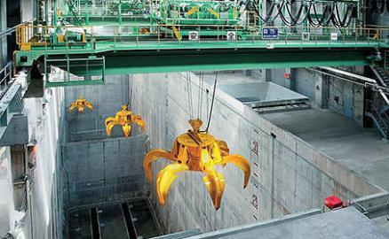 Sampah dicengkam dan diangkat dengan “crane sampah” lalu dimasukkan dari “lubang sampah” ke “tungku pembakaran”.