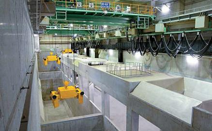Kemudian, jelaga dan debu yang dihilangkan dengan fasilitas pengolah emisi gas buang juga diangkut dengan conveyor yang berbeda, diolah dengan obat dan sebagainya, lalu ditampung di setiap lubang abu khusus.