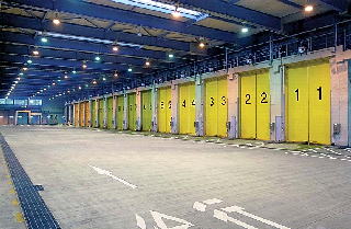 収集車が集めたごみをごみピットに投入する場所です。扉の向こうがごみピットになります。