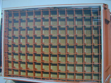 その後、排ガスにアンモニア水気化ガスを吹き込み、脱硝触媒で窒素酸化物(NOx)を分解除去します。
