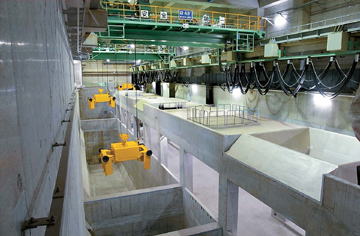 ごみピットは搬入ごみを一旦貯留し、搬入ごみ量の変動、焼却量の変動に対応するための設備です。