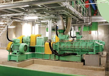 ごみを燃やして出た廃熱から約400℃の蒸気がつくられます。この蒸気のほとんどは蒸気タービン発電機に送られ電気を作り出しています。この発電機は、最大35,000kWの発電能力を有し、この量は約8万世帯の家庭の消費電力に相当します。