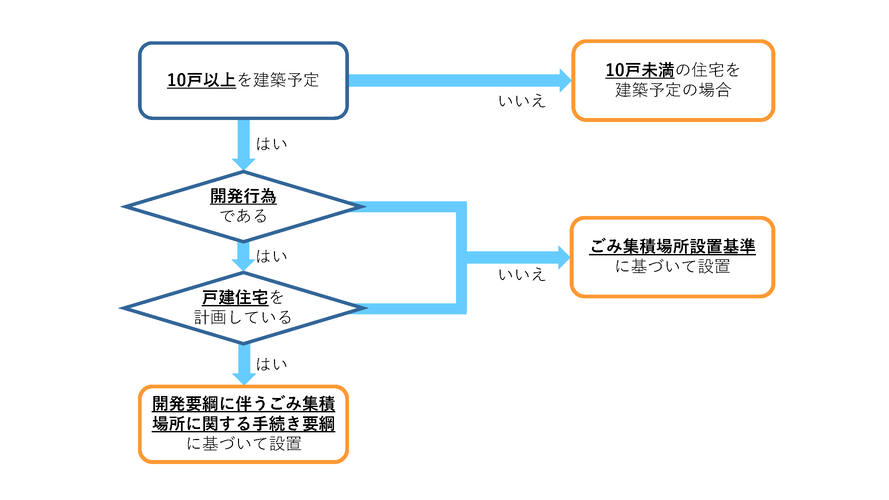 開発行為に伴うごみ集積場所に関する手続き要綱に基づき、集積場所の設置が必要となります。