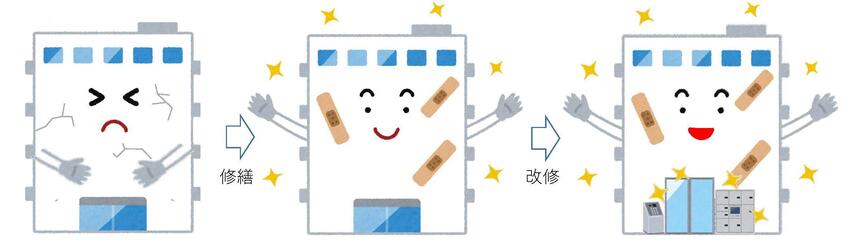 そこで、機能のグレードアップや追加をする必要が出てきます。これを「改修」と呼びます。
