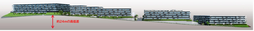 - 高低差約24mの敷地条件を解消するエレベーター連結設計によるバリアフリー動線