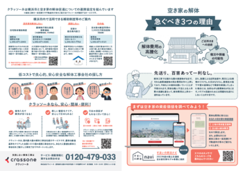 横浜市は株式会社クラッソーネと「空家等の除却促進に係る連携協定」を締結しており、「横浜市版すまいの終活ナビ」をご利用いただけます。
