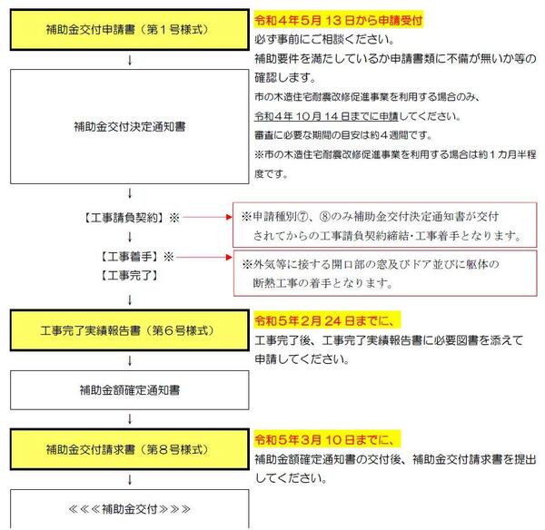 ※ 外壁塗装(遮熱、断熱タイプ含む)及び外壁・屋根の葺き替えを含む修理は、本補助事業の対象となりませんのでご注意ください。 補助対象については本事業要綱、要領、及び事業案内ちらしをご確認ください。